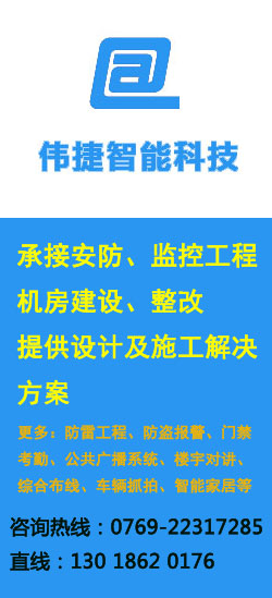 東莞市偉捷智能科技有限公司,專注東莞弱電安防、廣播系統(tǒng)安裝,背景音樂安裝等工程設(shè)計(jì)與施工。0769-22317285